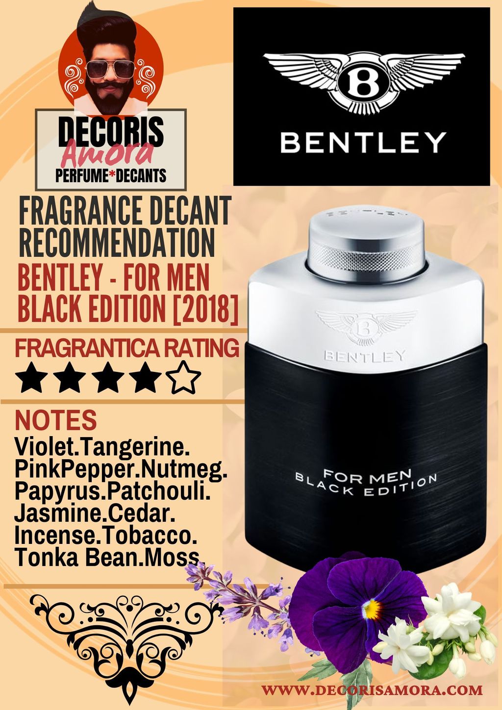 Bentley For Men Black Edition by Bentley is a Oriental Spicy fragrance for men. Bentley For Men Black Edition was launched in 2018. Top notes are Violet, Tangerine, Pink Pepper and Nutmeg; middle notes are Papyrus, Earthy Notes, Patchouli, Jasmine and Sweet Notes; base notes are Atlas Cedar, Moss, Incense, Tobacco and Tonka Bean.