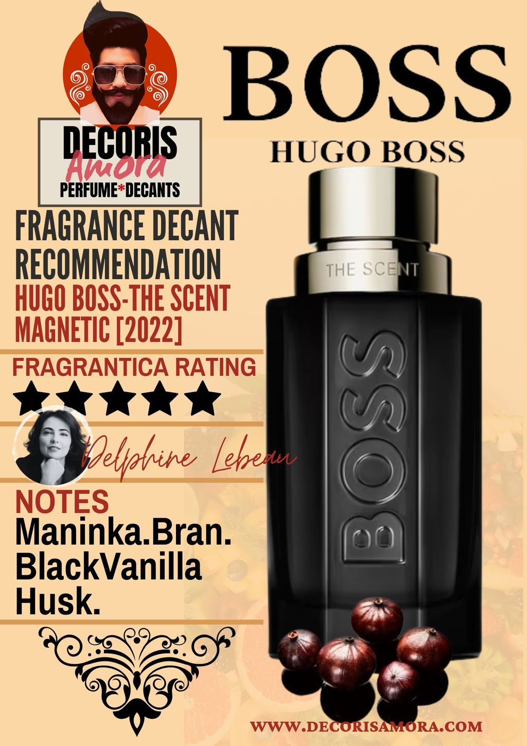 Boss The Scent For Him Magnetic by Hugo Boss is an Oriental Vanilla fragrance for men. This is a new fragrance. Boss The Scent For Him Magnetic was released in 2022. The perfumer who signs this fragrance is Delphine Lebeau. Top note is Maninka. The heart note is Bran. The base note is Black Vanilla Bark.